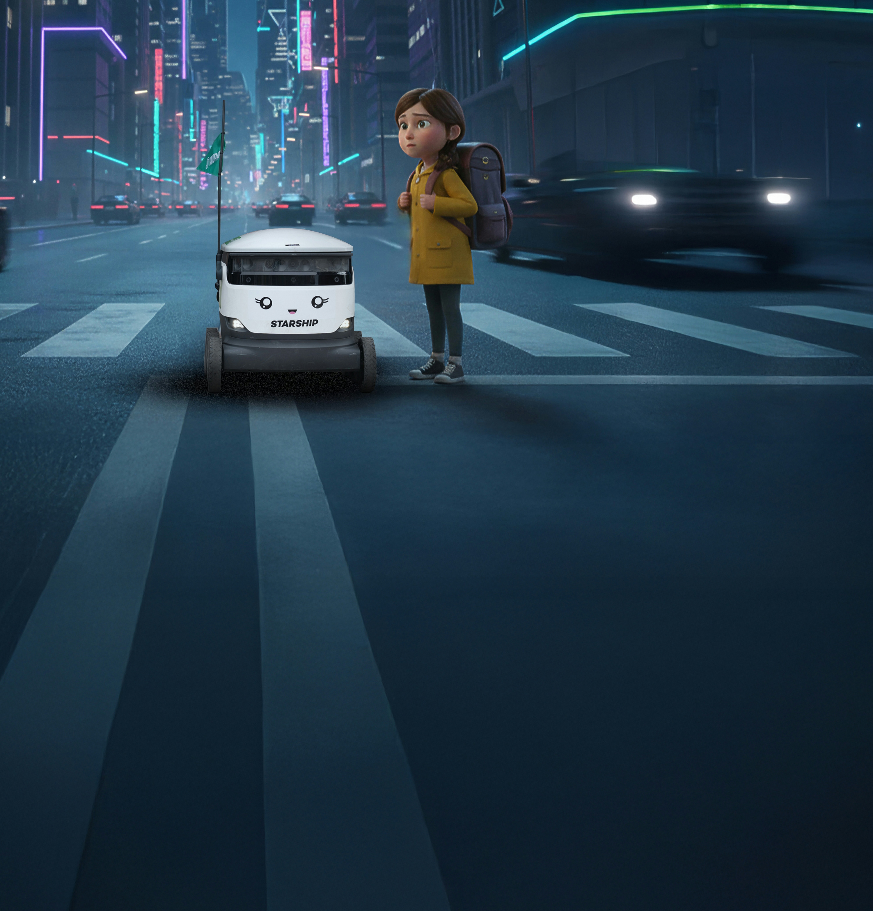 Koulujen aloituspäivänä sadat robotit ympäri Suomen keskeyttivät toimituksensa ja siirtyivät partioimaan maan suojateitä maan vilkkaimmilla liikennereiteillä. Robot varustettiin viesteillä liikenneturvallisuudesta, autoilijoiden huomion herättävillä lipuilla ja tietenkin ystävällisellä hymyllä. Eikä teko jäänyt vain partiointiin. Robojen tempaus oli joka puolella Suomea paikallinen tapahtuma, joka kutsui luokseen niin lapsia ja aikuisia sekä median ja liikenneturvallisuuden edustajia. Lapset harjoittelivat suojatien ylittämistä robojen kanssa, robot lauloivat liikennelaulua kuorossa ja jakoivat heijastimia lapsille. Samalla ne jättivät unohtumattoman kokemuksen ensimmäisestä koulupäivästä ja liikenneturvallisuuden tärkeydestä.