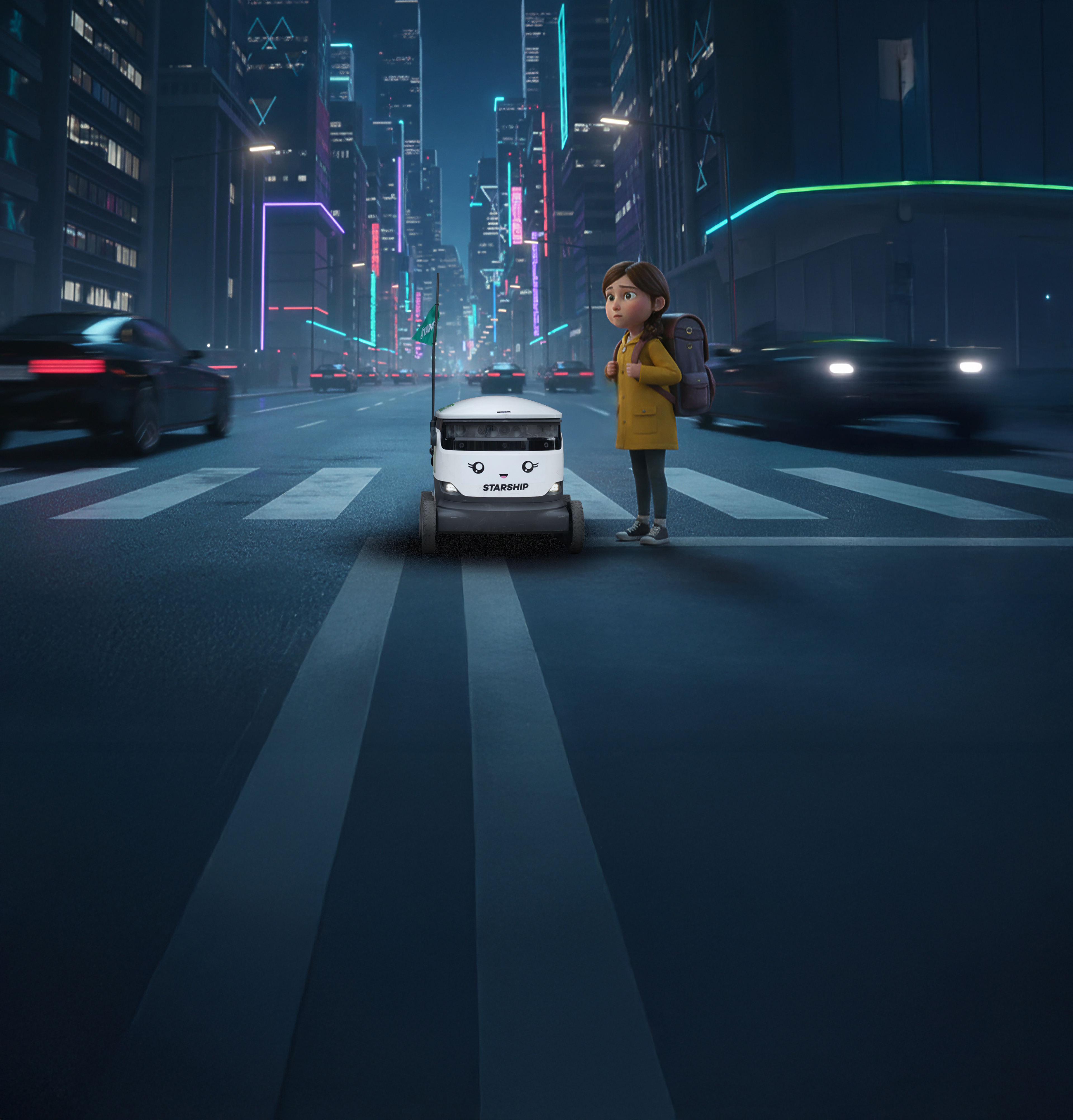 Koulujen aloituspäivänä sadat robotit ympäri Suomen keskeyttivät toimituksensa ja siirtyivät partioimaan maan suojateitä maan vilkkaimmilla liikennereiteillä. Robot varustettiin viesteillä liikenneturvallisuudesta, autoilijoiden huomion herättävillä lipuilla ja tietenkin ystävällisellä hymyllä. Eikä teko jäänyt vain partiointiin. Robojen tempaus oli joka puolella Suomea paikallinen tapahtuma, joka kutsui luokseen niin lapsia ja aikuisia sekä median ja liikenneturvallisuuden edustajia. Lapset harjoittelivat suojatien ylittämistä robojen kanssa, robot lauloivat liikennelaulua kuorossa ja jakoivat heijastimia lapsille. Samalla ne jättivät unohtumattoman kokemuksen ensimmäisestä koulupäivästä ja liikenneturvallisuuden tärkeydestä.